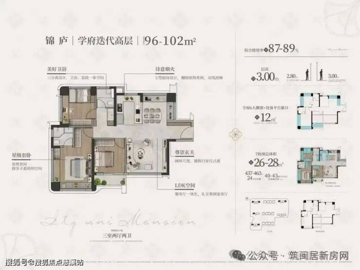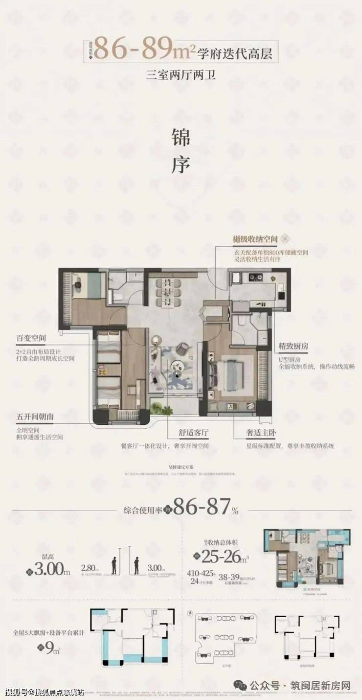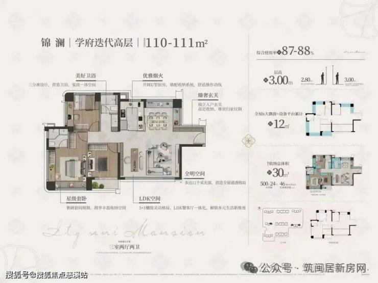 国贸学府锦樾共8栋翔安首个层高3+樾级学府住区,普宅层高3米,第四代洋房层高3.15米。3栋高层、3栋纯四代洋房住宅、2栋洋房并自带一个幼儿园,相当于12年一站式上学,主推建面约86-111平学府迭代高层 | 约132-139平樾级四代宅。