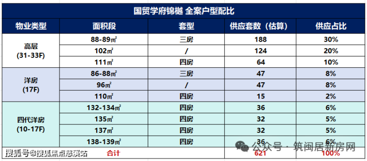 31至33层高层产品涵盖88-111平三至四房,占比60%、17层洋房产品涵盖86-110三至四房产品,占比18%、四代洋房产品涵盖132-139平四房,占比22%。