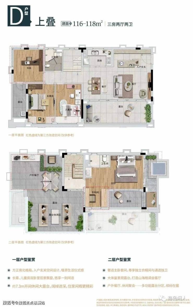 上叠:建筑面积约116-118㎡三房两厅两卫