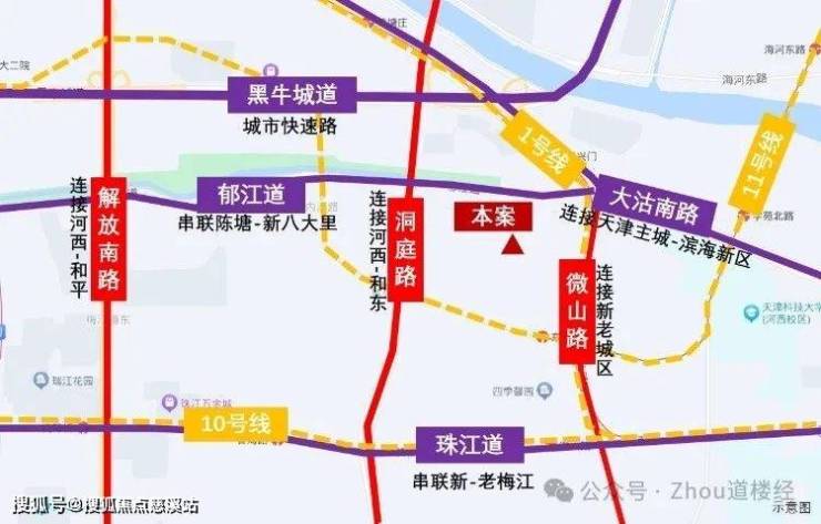 三纵四横多轨立体交通,黑牛城道、大沽南路、洞庭路等城市骨架道路,地铁1号线、10号线、11号线三大地铁交汇,出行高效便捷。