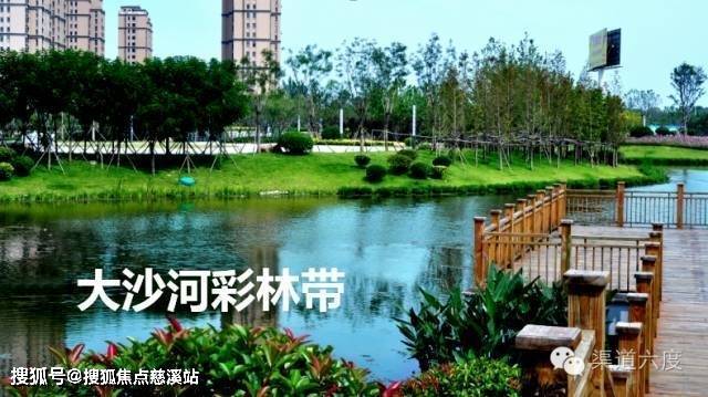 由中国建筑上海建筑设计研究院设计,把大沙河自然水系巧妙引入社区内部,形成内部的主要景观活水轴线。沿河打造十里大沙河彩林带,以春夏秋冬为主题,种植各种珍贵乔木、灌木及地被,打造四季风景。内部建有沿河草坪、室外休息场地,邻水的地方铺设木栈道、石板桥等,在楼底亲近大自然。