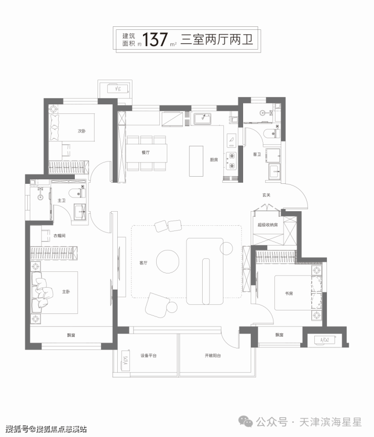 ;万科东庐主力户型涵盖89 - 137㎡的舒适三居 ,满足不同家庭结构的居住需求。以137㎡三室两厅两卫户型为例,6米的客厅开间搭配同等宽度的大露台,宽敞明亮,通风与采光极佳。客厅连接着餐厅与开放式厨房,一体化设计让空间更显开阔,烹饪、用餐、休闲交流互不干扰又紧密相连。餐厅可容纳6 - 8人就餐,厨房的中岛台、吊柜、地柜皆为精装修交付标准,品质卓越。南北通透的设计,使室内空气形成自然对流,时刻保持清新。