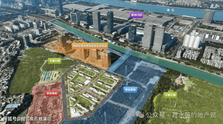 周边城市界面/人居素质杂乱:西南面的赤沙村需要整体旧改拆迁但进度目前由于富力退出后暂时停滞,新接棒的中铁建也没有更多动作,所以项目周边难以避免一定时间要与城中村为伍,大围公园也还没有进行很好的修缮所以目前看来略显荒凉,随着28年项目交付的时候,周边若干地块应该也相继成型了,届时应该会有较好的城市面貌。但是在此之前整个琶洲南区都将会处于大型的建设期,尘土飞扬,噪音萦绕无可避免;