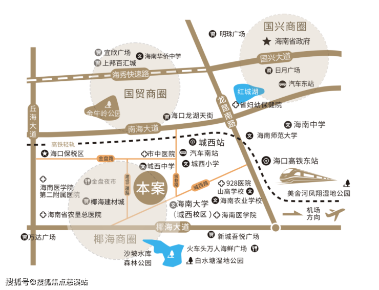 多维交通:项目距高铁东站、城西站、海口汽车总站约3公里,距美兰国际机场约20公里,距海口火车站约27公里;