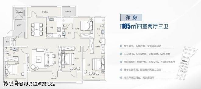 在空间设计上,洋房起步就是185㎡的四室两厅三卫设计,而且全部做到了四开间朝南,可变宽厅的最大宽度达到了8.9米,让业主及家人们最大化的享受阳光。项目层高更是高达3.2米到3.4米,在长清市场极为罕见,这样的设计,采光更亮,空间体验感更好,居住舒适度更高。