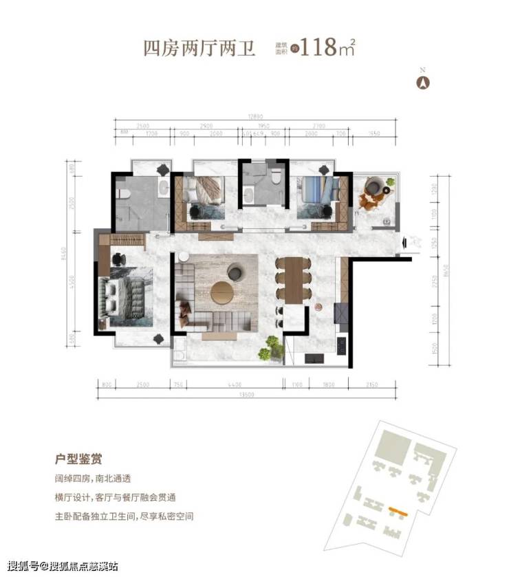 阔绰四房,南北通透2⃣横厅设计,客厅与餐厅融会贯通3⃣主卧配备独立卫生间,尽享私密空间