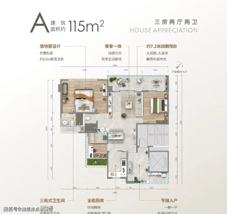品质交付:外立面采用米白色+咖啡红真石漆、双层Low-E玻璃等高端材料,室内配备洗碗机、蒸烤一体机、嵌入式冰箱等智能家居设备,主卫奢配唯宝双台盆、科勒浴缸等。