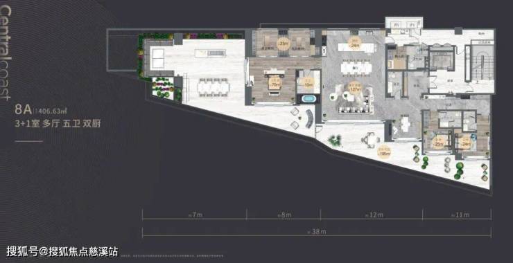 约38m横向观海面宽,大尺度环幕视野,户型方正、结构通透,值此尖峰人士的臻藏之选。