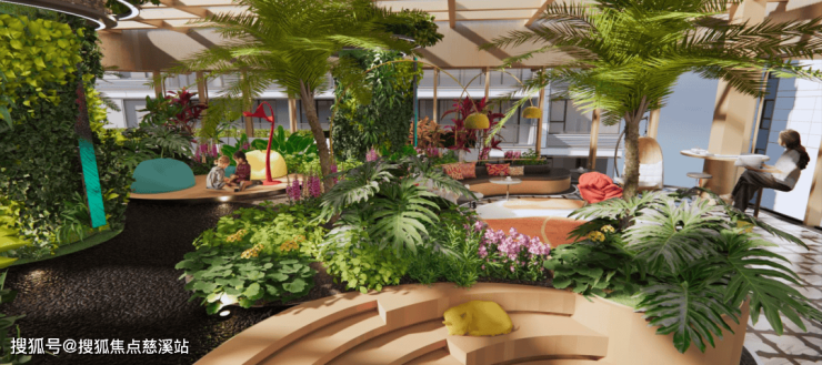 以玻璃穹顶引入天光,配空调调节室温,栽种丰富植物,实现四季有景可赏。