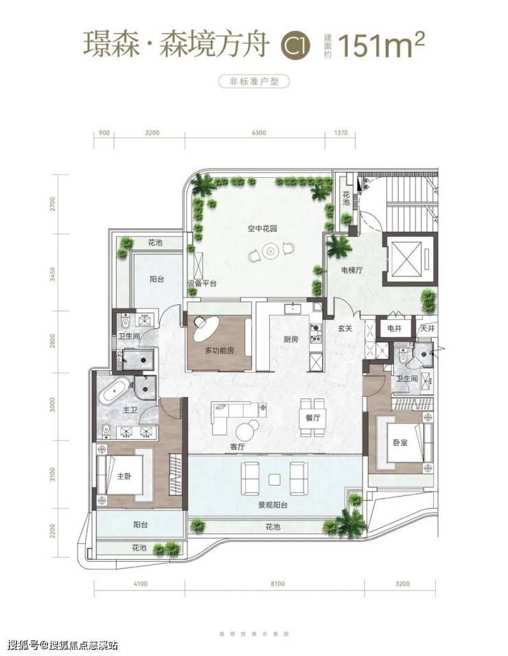 除此之外,项目更规划四代宅进阶户型,将空中花园纳入室内动线,部分露台空间可实现约12米的挑高,营造独特无阻的“云端绿洲”。庭院不再是地面的专利,而是成为家的延伸,让“有庭有院”的栖居理想得以实现。