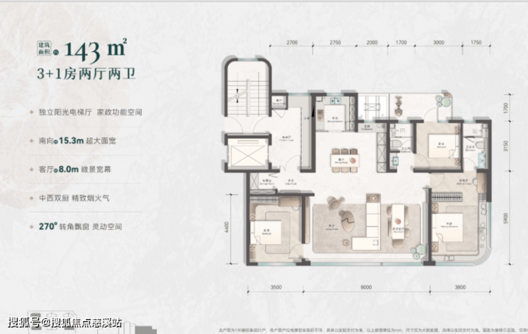 约129:143:160㎡≈3:6:1,另有一层带院及顶层复式产品