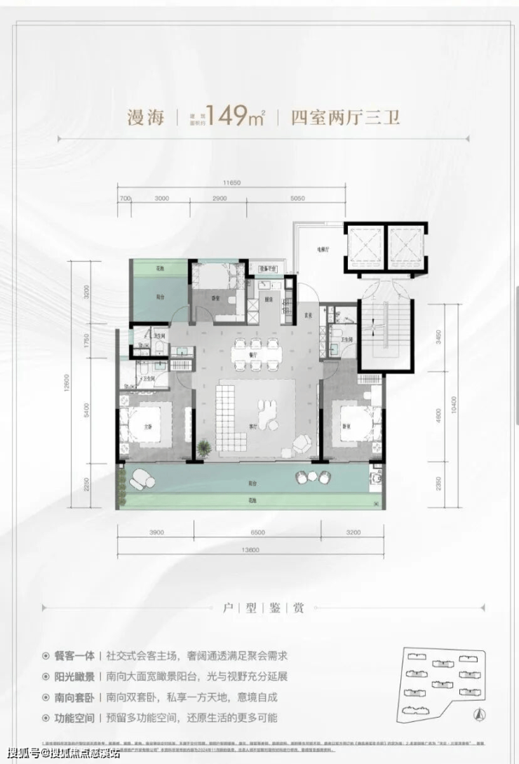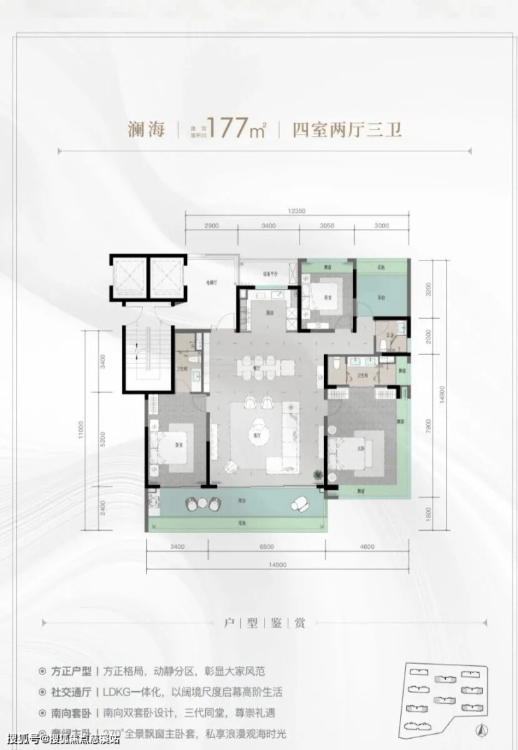 规划建筑面积约126-213㎡观海奢装大平层,约3.1米阔绰层高,部分户型创新设计270°全景飘窗主卧套、四开间朝南等,全成品高标奢装,营造全新舒居体验。