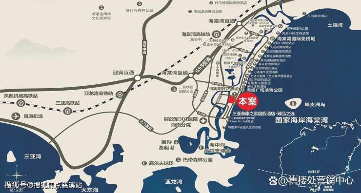 距 G98 环岛高速约 6 公里,凤凰机场 27 公里;规划中的海棠湾高铁站(2026 年通车)距项目约 12 公里,建成后将实现「30 分钟直达三亚站,1 小时畅15联全岛」。
