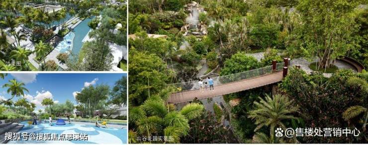 社区内打造「山谷花园、嬉水花园、滨河花园」三大景观点,以 10 米高差瀑布、吊桥廊亭、平台栈道串联,种植热带药用植物与香氛花卉,通过森林浴、园艺疗法促进身17心康复。毗邻南田温泉,业主可专享温泉理疗套餐。