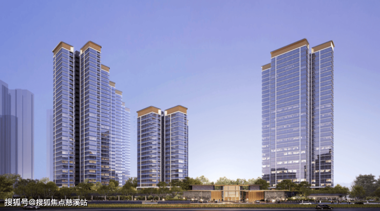 整体呈“L”型,如此一来,可保证户户有景。项目外立面采用大幅的玻璃幕墙,搭配简约暗金色调,极具豪宅感。