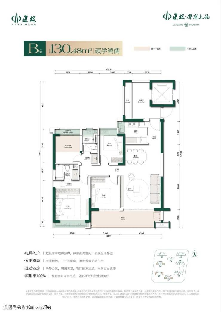 2. 0 公摊魔法:电梯前厅、飘窗、设备平台全赠送,最高 100% 得房率,同面积多 30% 使用空间。