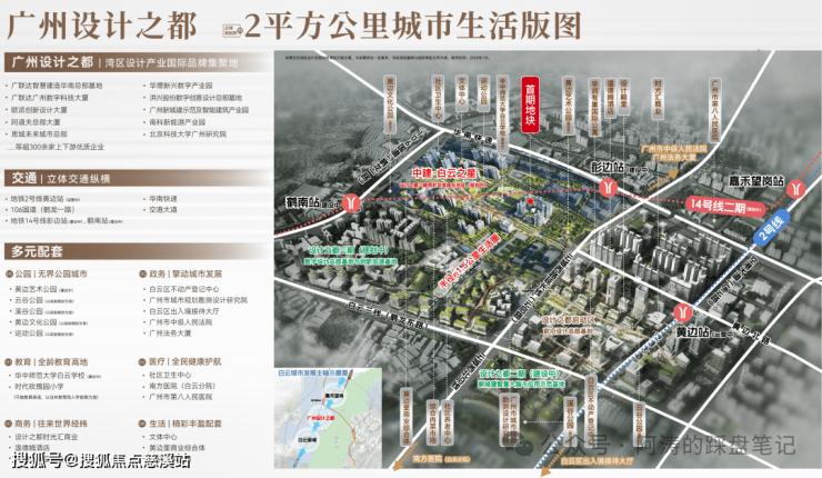 •地铁2号线:距黄边站(运营中)直线距离约800m,3站白云新城,直达江南西,广州南。1站换乘嘉⽲望岗(地铁2/3/14号线交汇)。