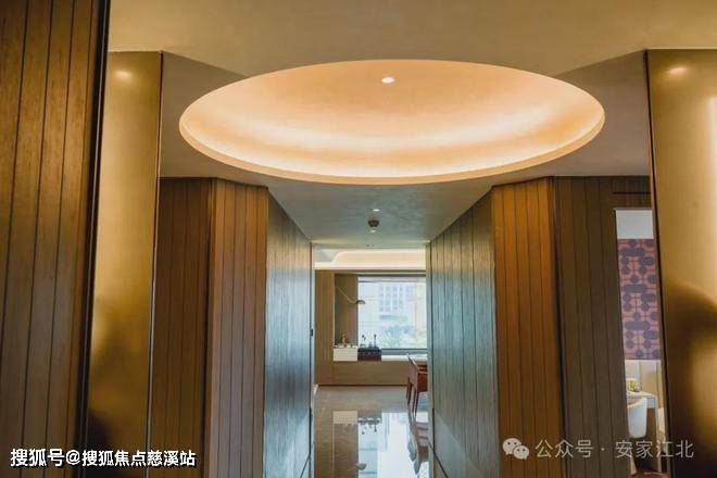 项目的天花板采用了艺术漆材质,而且还是弧形的造型设计,搭配上无主灯,给人一种细腻的质感。