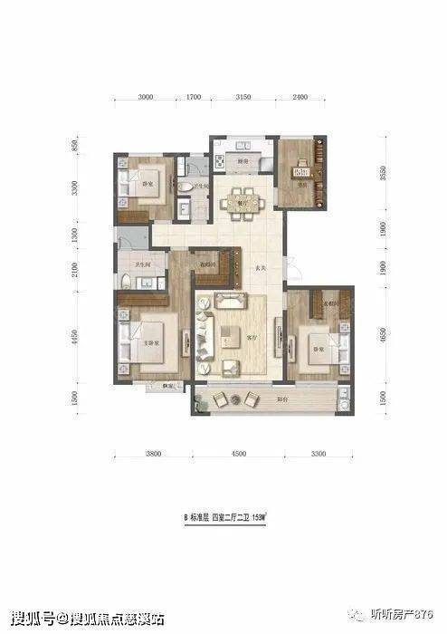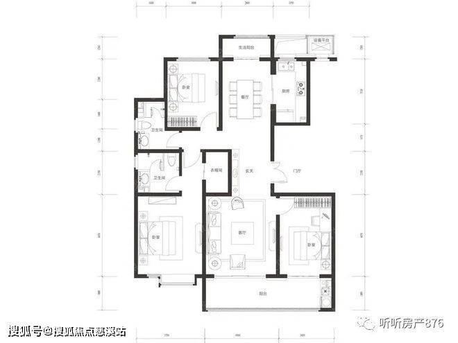 145米的洋房户型是目前比较主流的户型设计,入门玄关区域把餐厅和厨房分割开来,卧室分布在三个方位,业主生活私密性得到有效保证。七米左右的联通阳台视野更开阔,但餐厅北侧的小阳台由于面积不大且在阴面,功能上略显鸡肋。