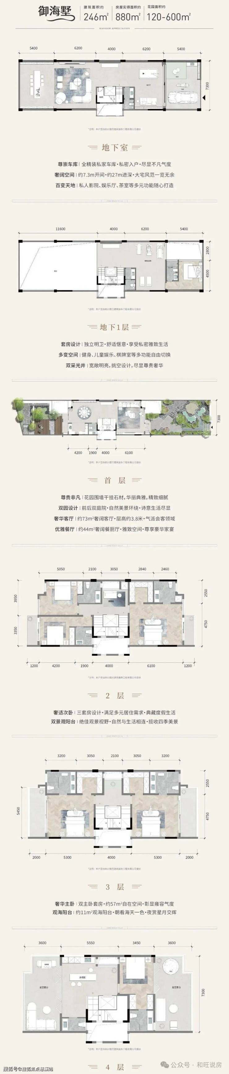 御海墅(建面246㎡,房屋实得880㎡,花园120-600㎡)