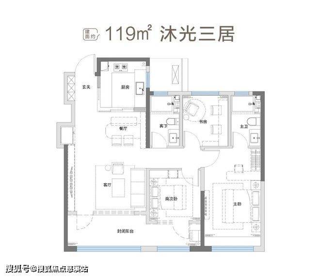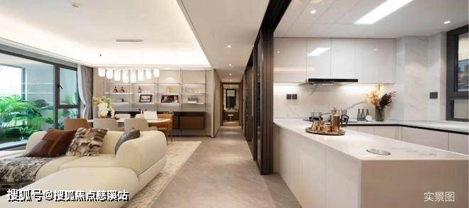 对于追求功能与美学平衡的家庭而言,约119㎡沐光三居堪称满分解决方案。LDKB一体化宽厅设计南向三面宽达10.8米,搭配U型厨房与全景落地窗,让阳光与清风自由流淌于室内。主卧套房配备3.3米全景飘窗,次卧直通阳台,全屋得房率高达83%。更巧妙的是,通过冰箱移位设计,餐厨区灵活扩展至6.5米,既满足了家庭聚餐需求,又保留了客厅的通透感。