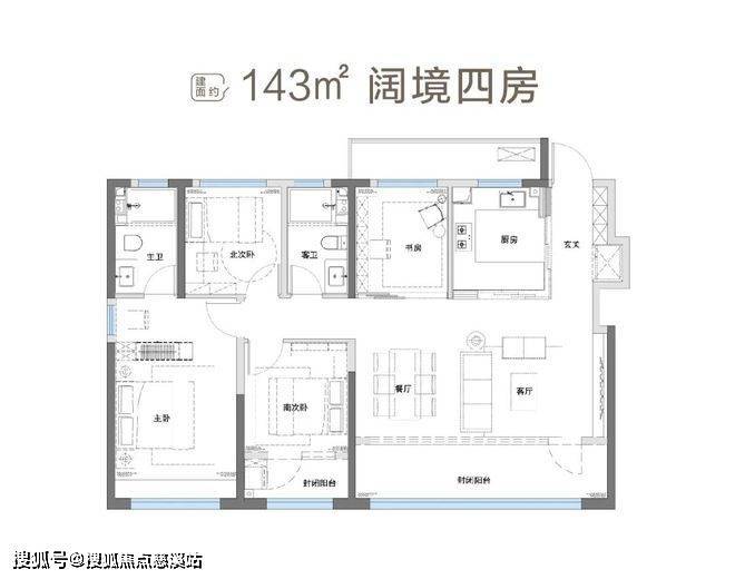 而对于需要更多功能空间的家庭,约143㎡阔境四居则展现出惊人的包容性。南向三面宽13.5米、LDKB横厅组合(7米纵深)的设计,不仅让客厅成为家庭社交的核心场景,更通过3.5米进深的酒店式主卧套房(含衣帽间、独立卫浴),满足了三代同堂的居住舒适性。全屋三分离卫浴设计、智能新风系统以及博世嵌入式厨电的标配,更凸显了科技与生活的深度融合。