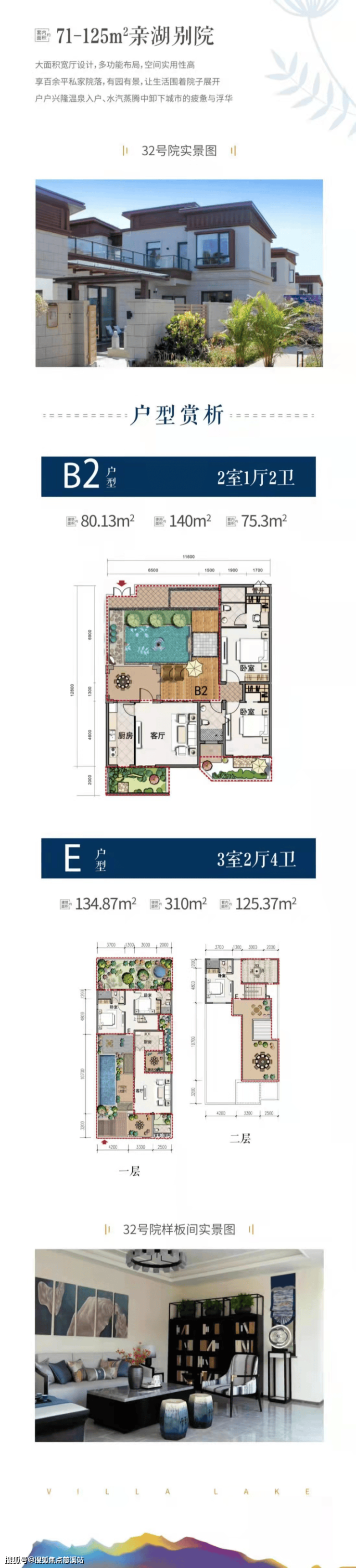 1.亲湖别院:套内面积约71-125㎡两房两厅/三房两厅;