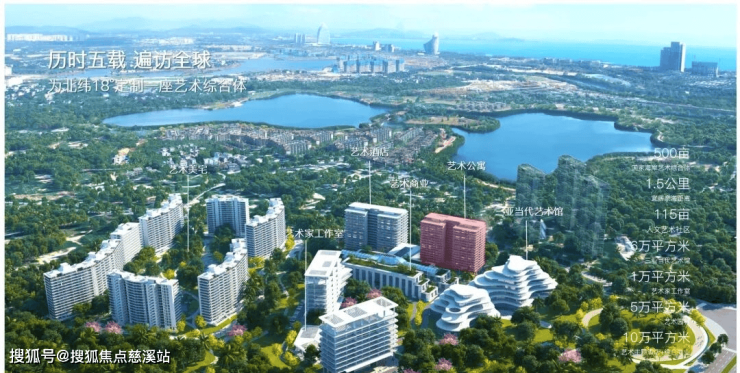 占地面积:500亩(艺术前区约240亩、商业综合体约130亩、艺术美宅约115亩)