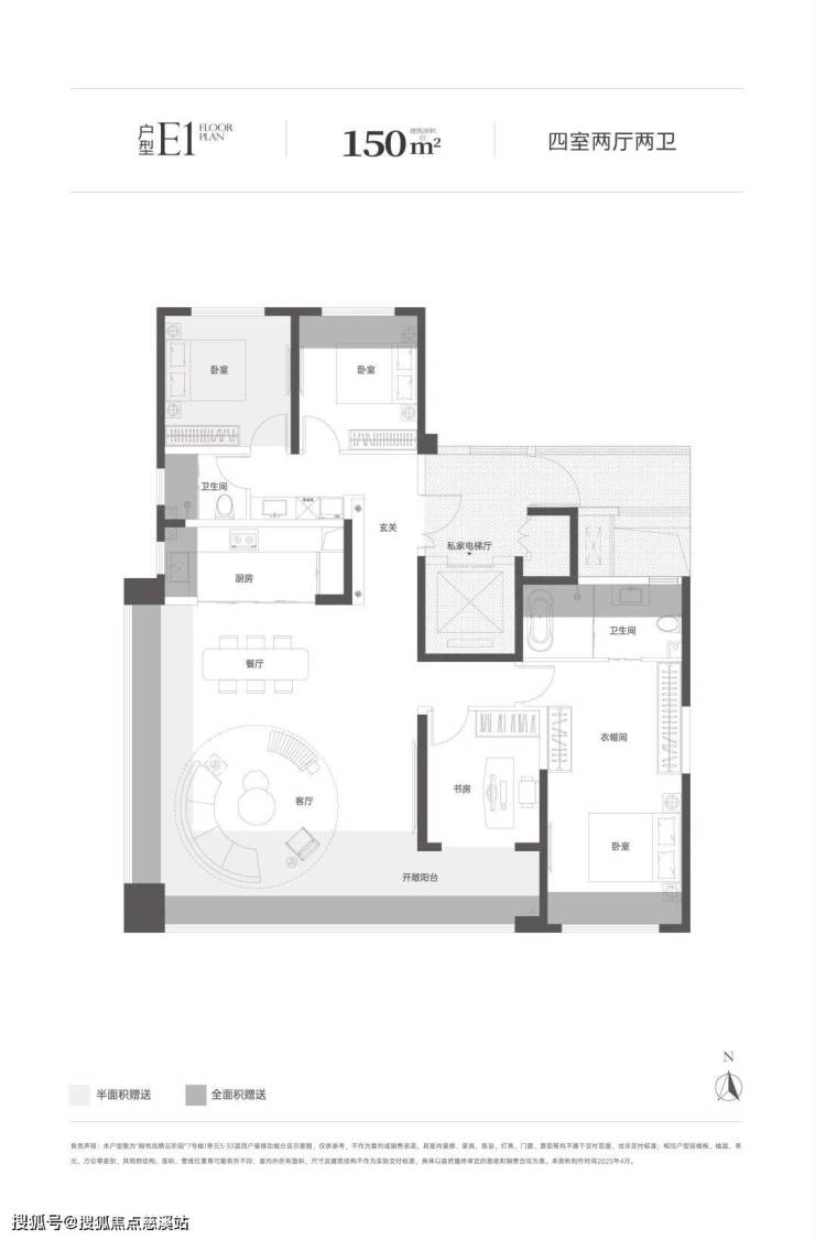 建面约150㎡四室两厅两卫