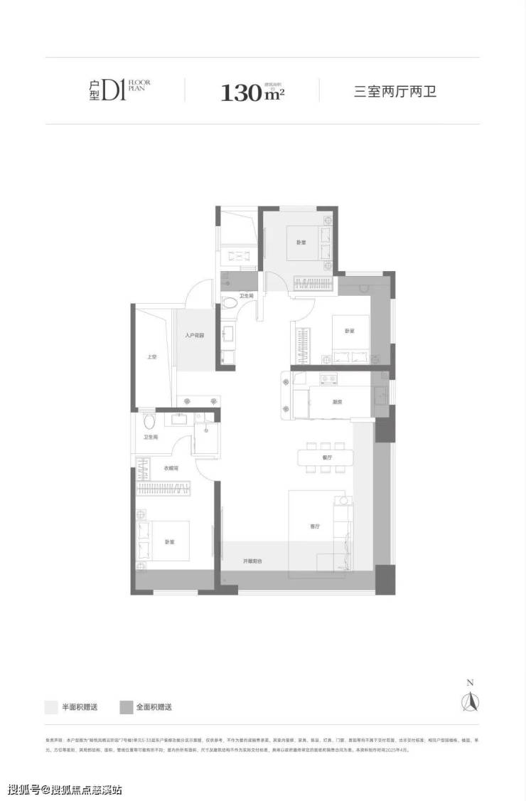 建面约130㎡三室两厅两卫