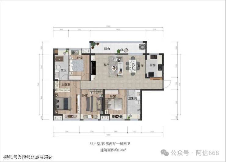 2、120平米四房两卫