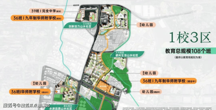 规划打造 8 所学校(4 幼儿园+1 小学+2 所九年制+1 所完全中学),华师附已签约,目送式全龄教育;