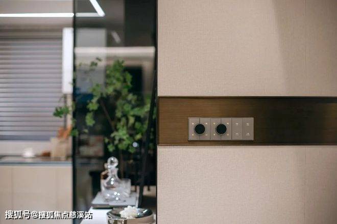 精装标准升级包括大金空调、松下新风、菲斯曼地暖。客厅电视墙用仿玉石岩板,无主灯配悬浮顶。