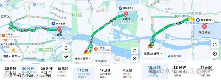 自驾的话,项目旁边200米就是内环路,过个江湾大桥就是越秀区,周边还有东晓路、滨江东路等干线,基本算是四通八达,开车去琶洲、越秀、珠城等地30分钟内都可抵达。