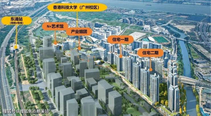 北地块靠近港科大(广州),小区呈一字型排布,楼栋排布错位,无高层建筑遮挡,业主北边可欣赏港科大(广州)校园景观,南边能俯瞰小区园林。