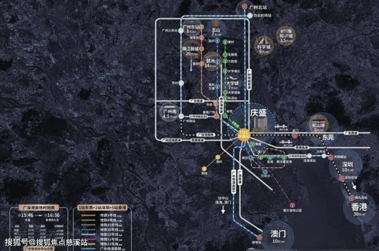 在高铁方面,1站庆盛高铁站,庆盛站作为南沙目前仅有的高铁站,连接广深港高铁和规划中的广中珠澳高铁。通过广深港高铁,9 分钟可到东莞虎门,30 分钟到深圳北,35 分钟到西九龙 。