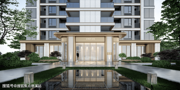 单元入口简洁、轻巧、通透,通过局部装饰元素和材质搭配,整体呈现:东方气质、礼序归家、景观相融,采用石材、铝板、高透玻璃等材料, “晓棠”元素也运用其中,打造归家近人精致尺度。