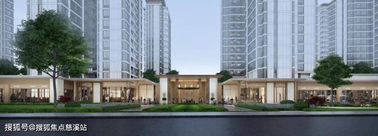 立面上提取“线面体”中的线和框造型元素,以线条为主、框为辅,通过形体划分,精致线条勾勒,色彩元素及有温度材料等搭配,整体立面呈现以现代形式为主,东方气质为辅的未来东方感。
