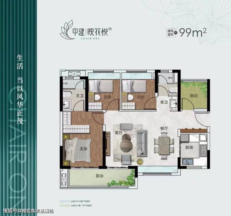 中建·映花悦府项目总占面:15万方,建面:33万方,容积率:2.8,绿化率:35%,车户比:1:1。