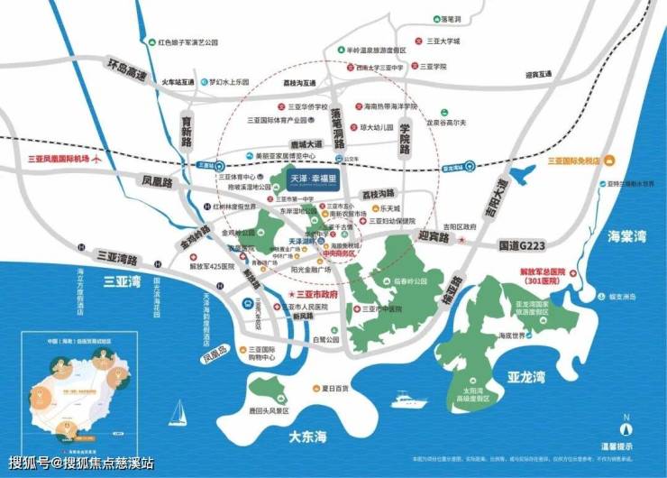 “全省规模最大的三亚市妇幼保健院”距离项目约500米;三亚市人民医院、农垦医院、三亚市中医院等“三甲医院”以及解放军425医院,解放军301医院。