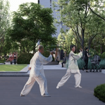 在聚场中央,将最开阔平坦的地面留给社区的长者。作为非剧烈运动空间,每天做一场有氧运动或养生太极,让长者在宁静之中安享幸福。