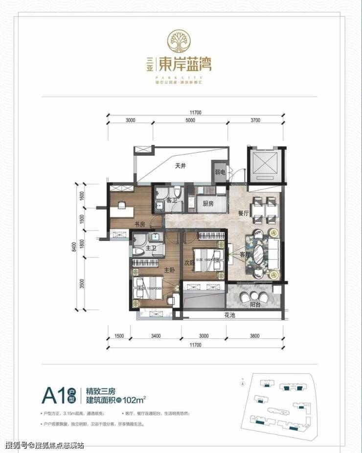 ▼A1户型: 102㎡ 精致三房