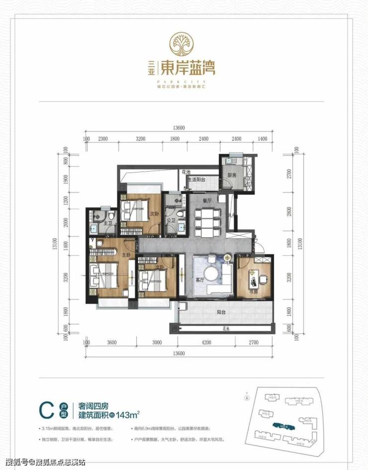 ▼C户型:建面约143㎡ 奢阔四房