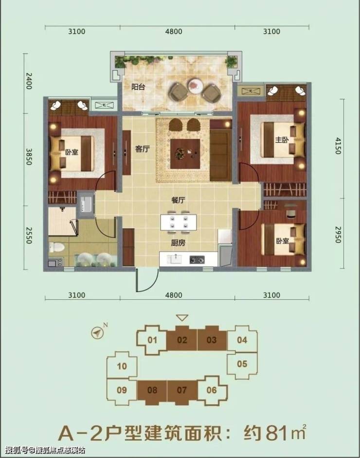 主力产品:59~61㎡两房 78.86~81.25㎡三房
