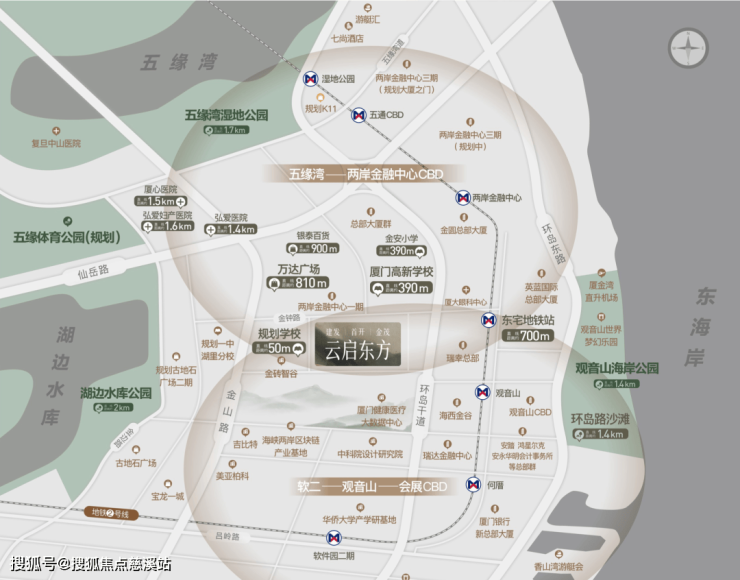 配套:紧邻万达-银泰、K11(在建中)等商圈,近地铁2号线(直线距离东宅站约700米),约2公里范围内拥揽弘爱医院、厦心医院等医疗,毗邻五缘湾湿地公园、湖边水库公园、观音山海岸公园等休闲。