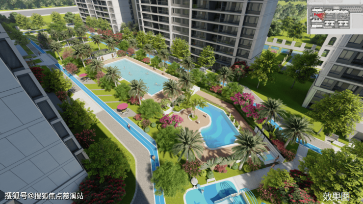 以热带园林点缀归家动线,并形成开阔的公共活动场域,为邻里活动提供高质量社交空间;