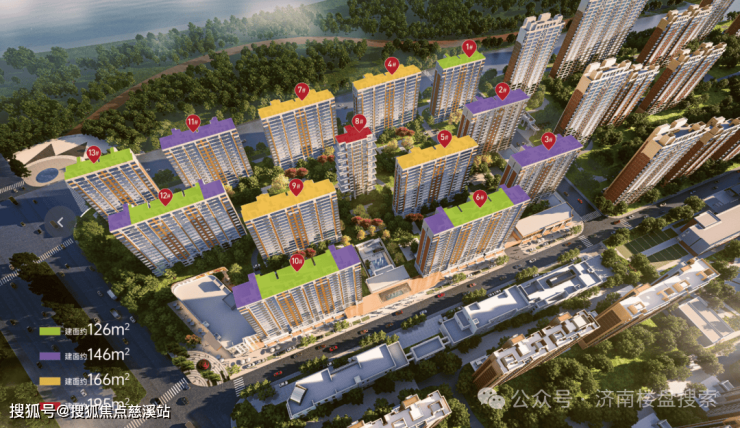 项目户型面积以126-146㎡产品为主,分布在小区两侧;中间楼栋以166㎡户型为主;楼王位置打造了2梯1户的大平层四代宅。