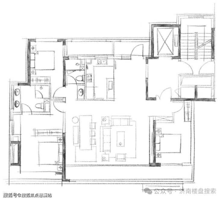 剧透一下户型,先来看一下设计大佬手绘的版本。