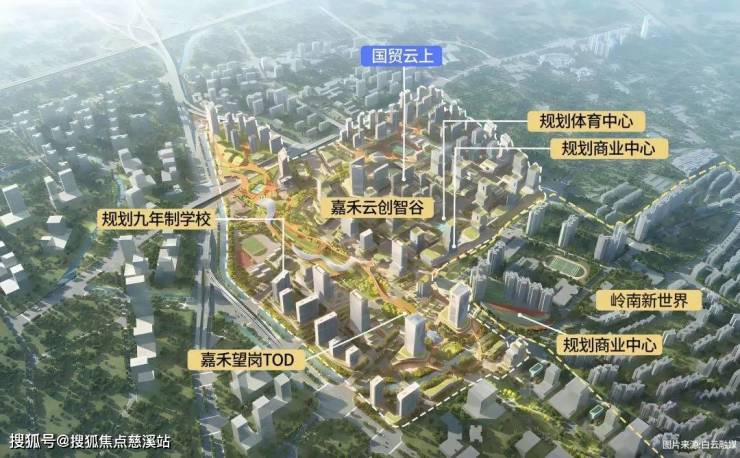 “白云新城嘉禾望岗商务核心区及产城融合的TOD综合开发示范区”,虹吸巨量的高精尖人才汇聚于此,顶级流量交通枢纽+千亿级产业集群,中心价值将再次飞跃。