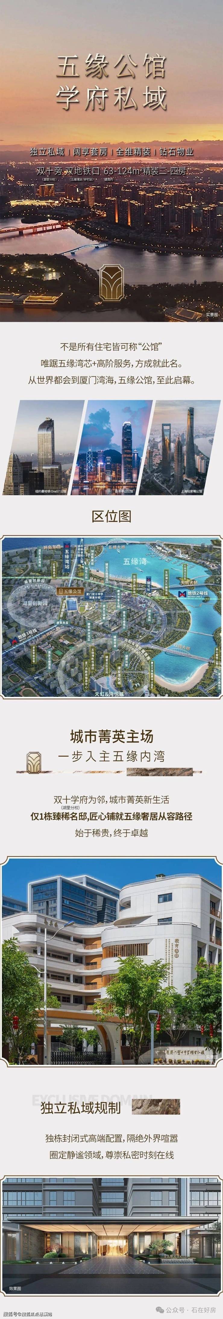 五缘湾核心选址,高奢配置,铸就公馆生活AMOY HOUSE HELPER它由钟宅板块最好的、原本专为人才预留的一栋楼,升级打造而来不仅地理位置非常核心,教育资源非常优质(配套双十中学湖里分校),产品的素质,也堪称卓越非凡。